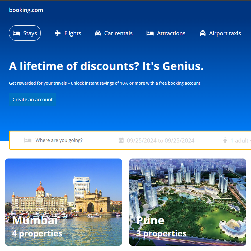 Web application that allows users to search, locate nearby hotels, and make reservations.
